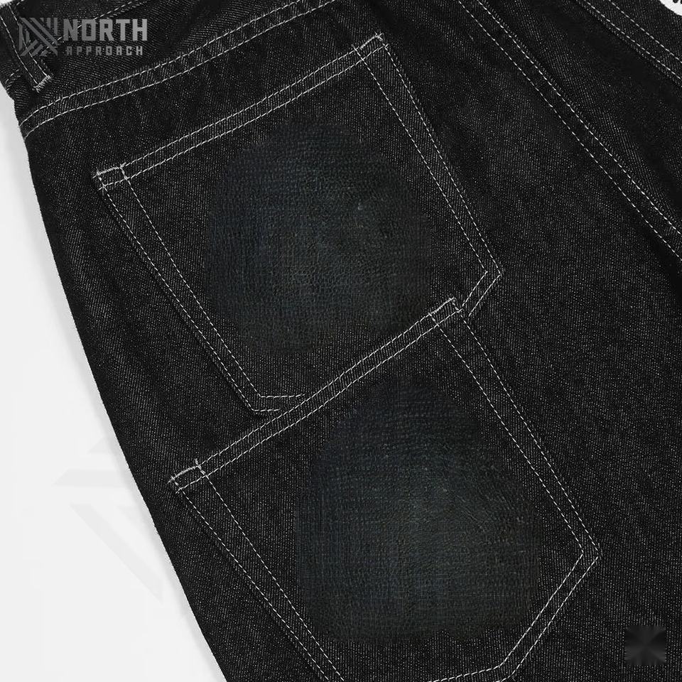 กางเกงยีนส์ทรงหลวมสำหรับผู้ชายกางเกงยีนส์ซักแนวสตรีทสไตล์วินเทจทรงหลวมพิมพ์ลายเลเซอร์