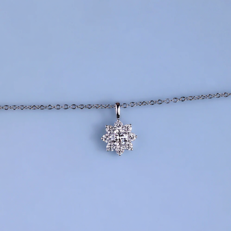 จี้เพชรคลัสเตอร์แบบ1.3ct ที่แล็บแบบกำหนดเองเทียบกับความชัดเจนเครื่องประดับทอง14K สุดหรูของผู้หญิงสำหรับวันครบรอบ