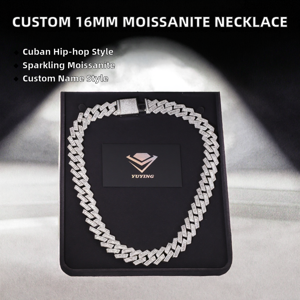 สร้อยคอแบบสั่งทำพิเศษขนาด 16 มม. พร้อมจี้ชื่อประดับเพชรทรงบาแกตต์ VVS มอยส์ซาไนต์ โซ่แบบคิวบันชุบเงินแท้ 925 สไตล์ฮิปฮอป