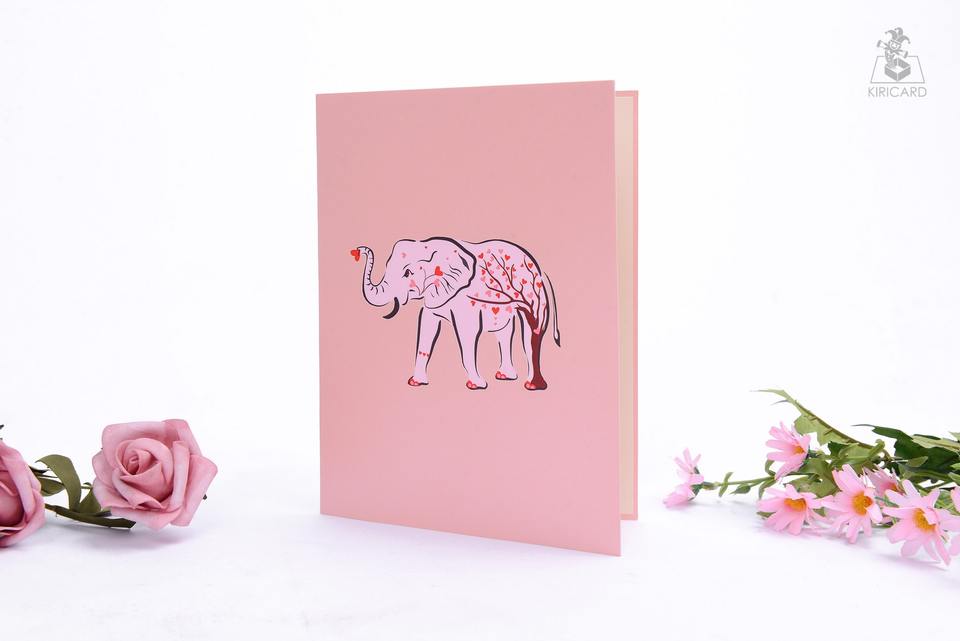 การ์ดป๊อปอัพ3D รูปช้างต้นไม้น่ารักของที่ระลึกกระดาษสำหรับส่งออกดีไซน์แบบกำหนดเอง