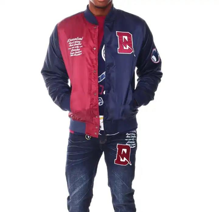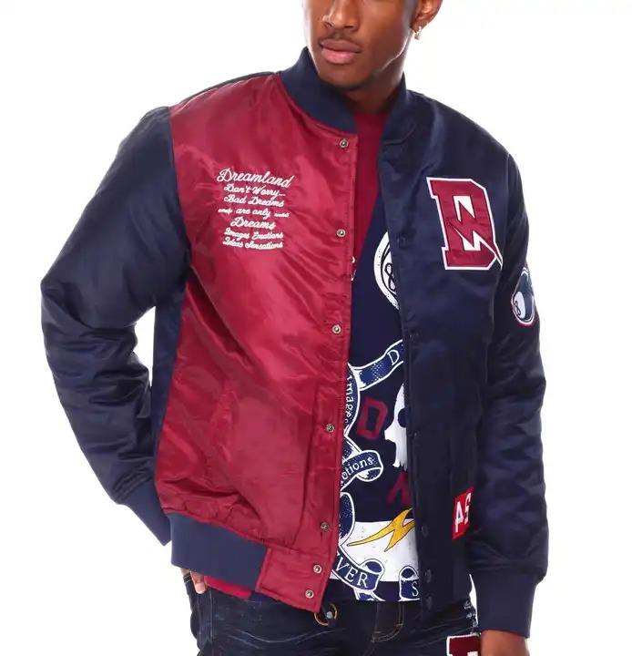 การออกแบบที่กําหนดเองเบสบอลเสื้อแจ็คเก็ตบอมเบอร์แพทช์ที่มีคุณภาพสูงเย็บปักถักร้อยโลโก้ผู้ชายแจ็คเก็ตเบสบอล