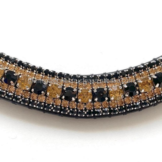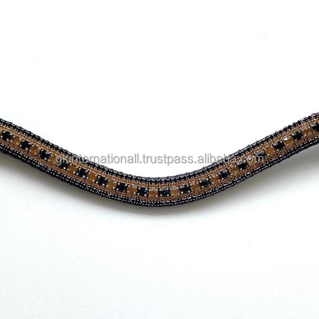 สายรัดคิ้วหนังม้าผสมคริสตัลสีดำและสีทองดีไซน์ตามสั่งทำจากหนังแท้