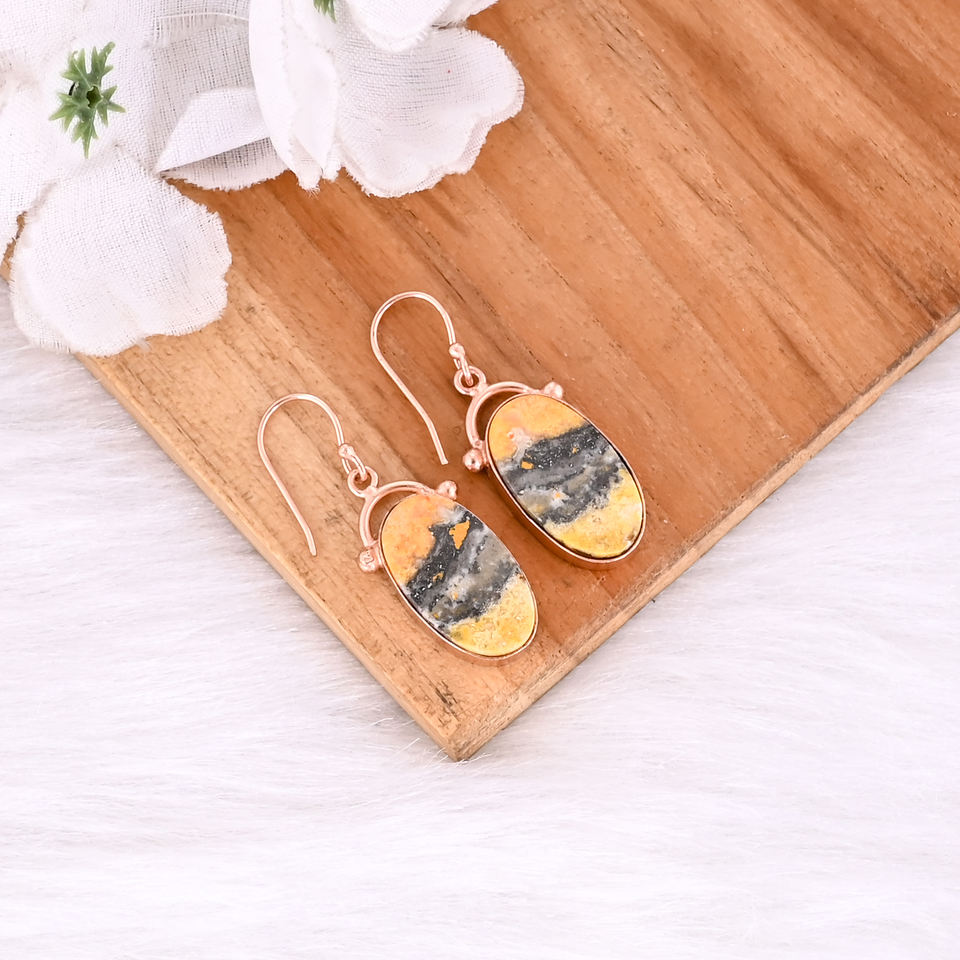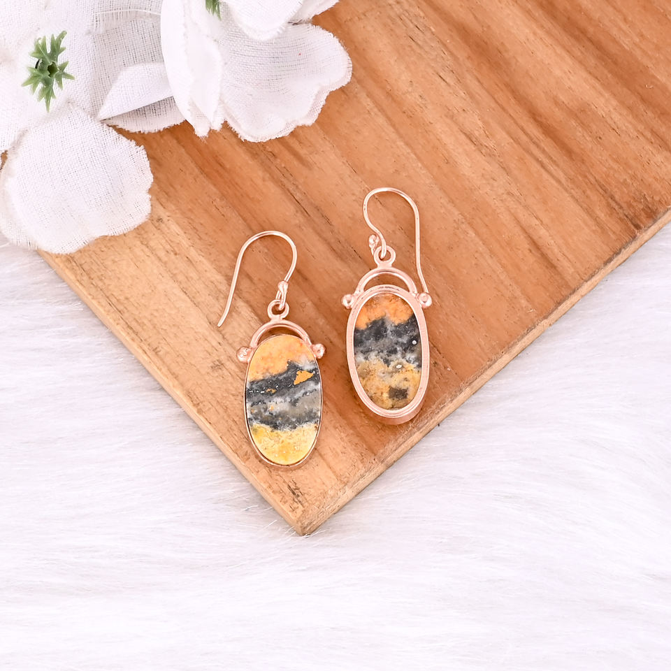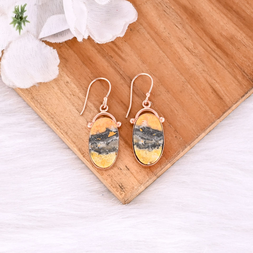 ต่างหูทองเหลืองสำหรับผู้หญิงต่างหูแจสเปอร์พลอยบัมเบิลบีดีไซน์ตามสั่ง