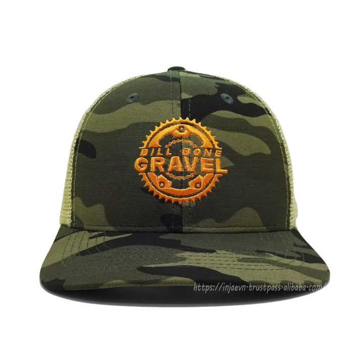 หมวกกีฬาตาข่ายคอตตอนระบายอากาศออกแบบตามสั่งหมวกฮิปฮอปทรักเกอร์ใส่สบายปัก3D 2D สำหรับใส่ลำลอง