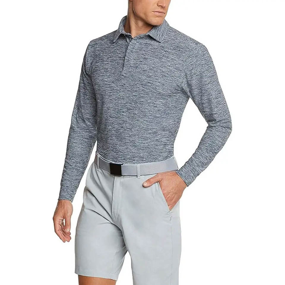 เสื้อโปโลเล่นกอล์ฟผ้าสแปนเด็กซ์โพลีเอสเตอร์พิมพ์ลายโลโก้แบรนด์ของคุณเองดีไซน์ตามสั่ง