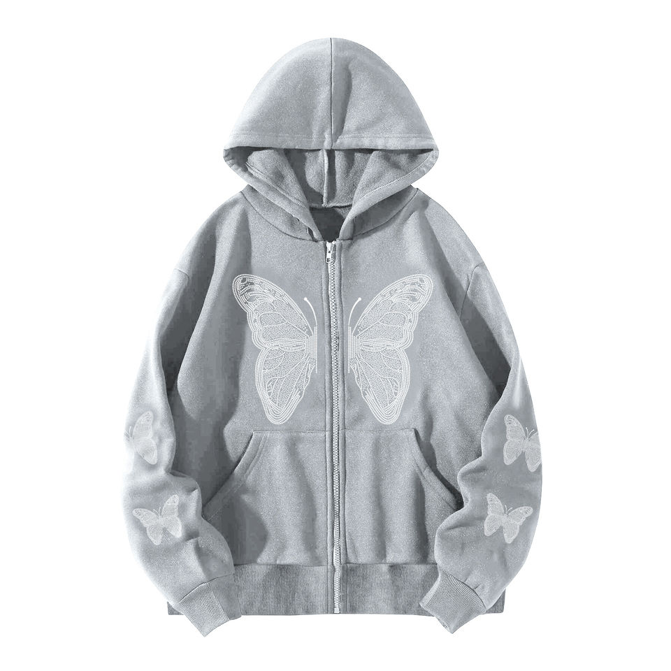 เสื้อฮู้ดผู้ชายซิปโอเวอร์ไซส์มีซิปมีกระเป๋าทรงหลวมพิมพ์ลายผีเสื้อไซส์ใหญ่พิเศษออกแบบได้ตามต้องการ