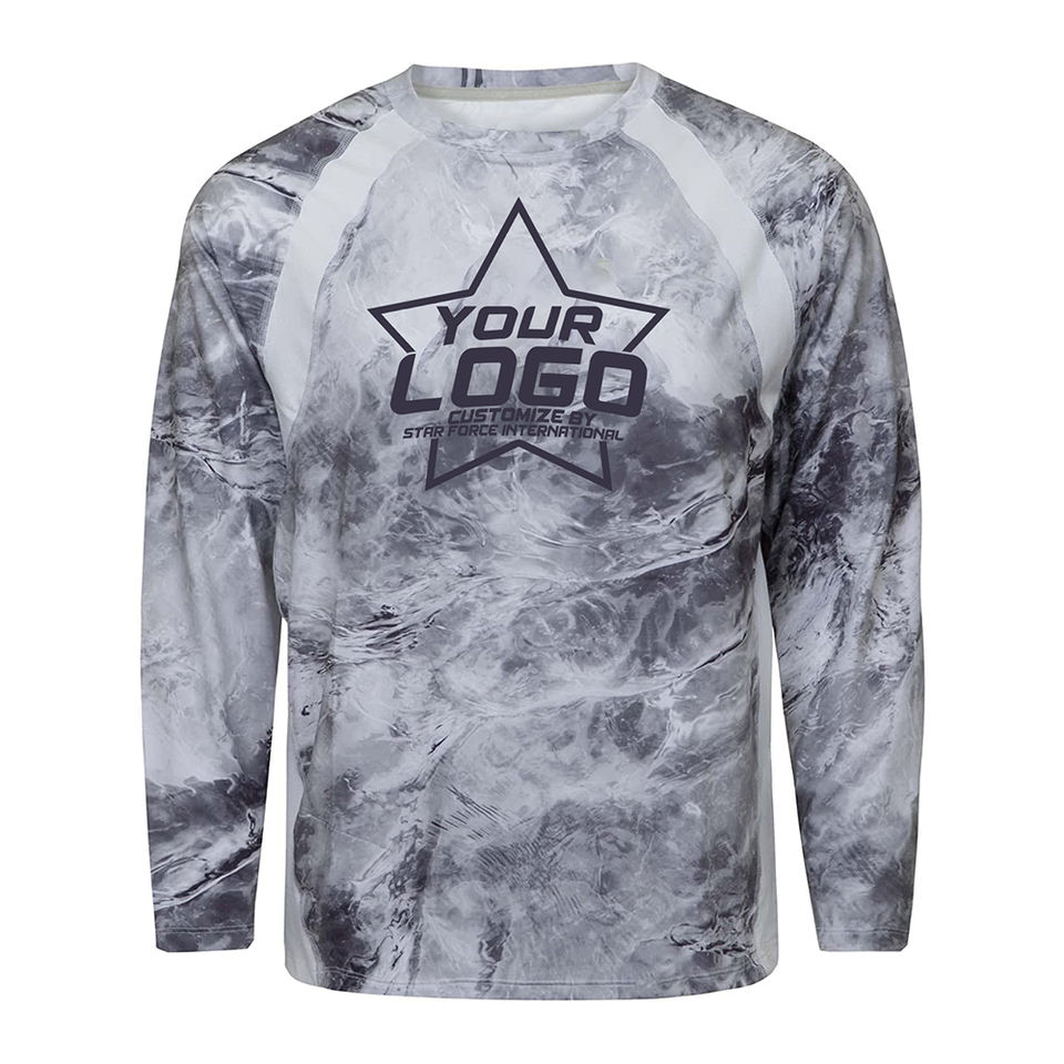 เสื้อตกปลาแขนยาวระบายอากาศได้ดีพิมพ์ลายกันลมกันน้ำหน้ากากลายพรางมีฮู้ดสำหรับตกปลา UPF 50 + แห้งเร็ว