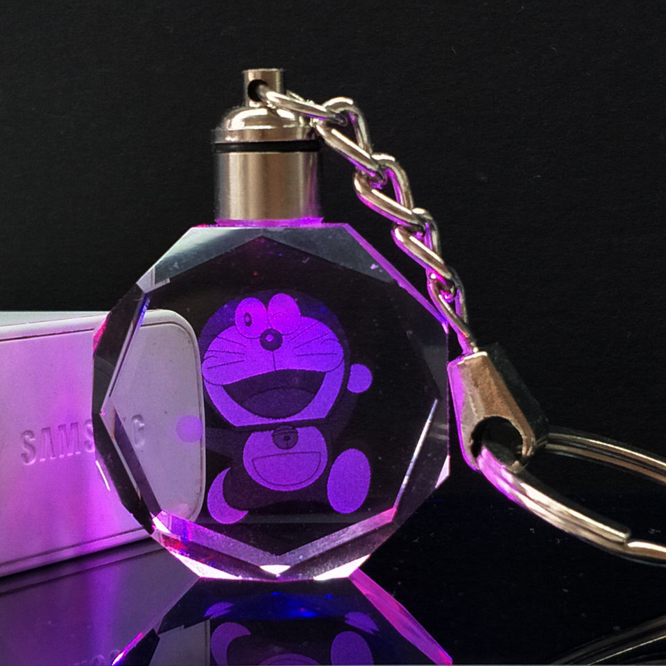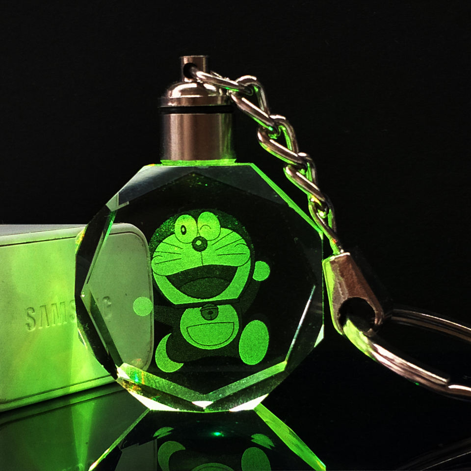 พวงกุญแจโดราเอมอนเลเซอร์รูปกล่องเก็บของแบบกำหนดเอง,พวงกุญแจติดกระจกคริสตัลของที่ระลึกของขวัญส่งเสริมการขาย