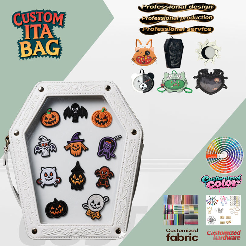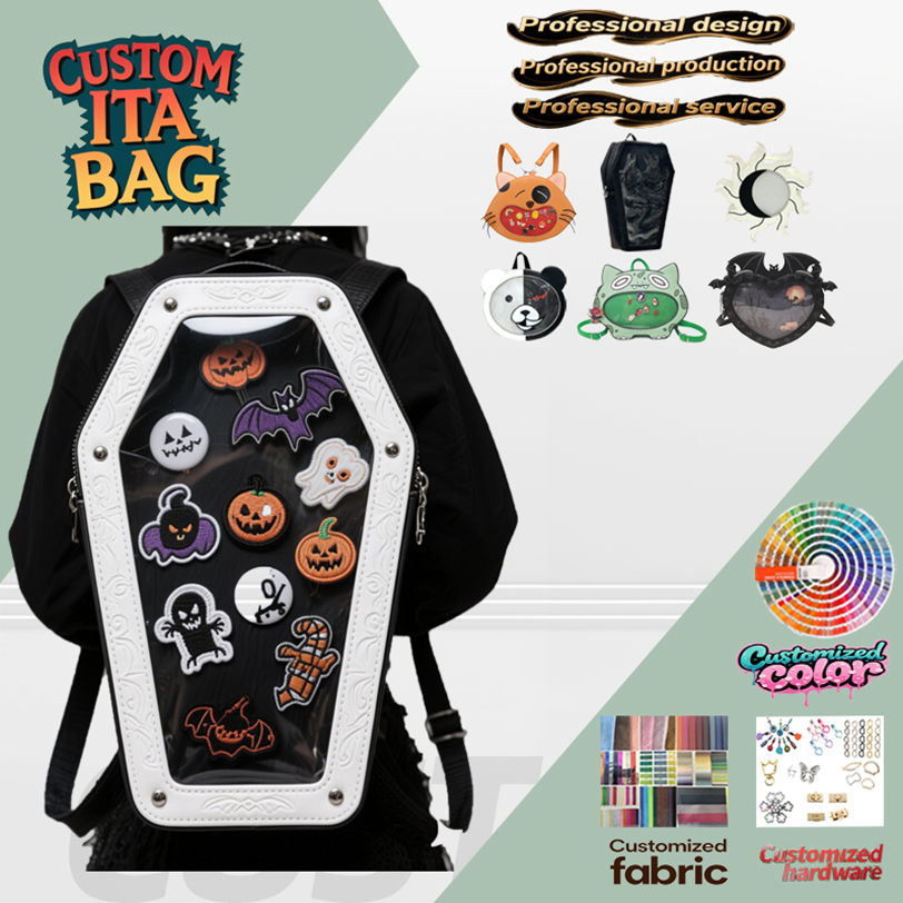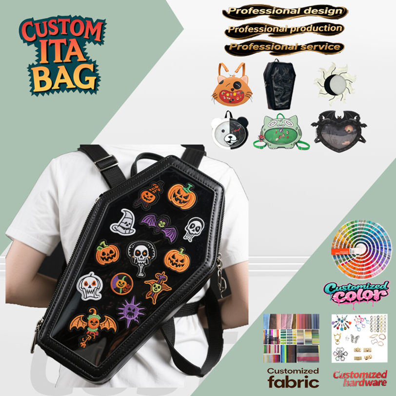 Custom Design Coffin Funny Ita Bag Dark Gothic Gothic Backpack Enamel Pin Anime ItaBag