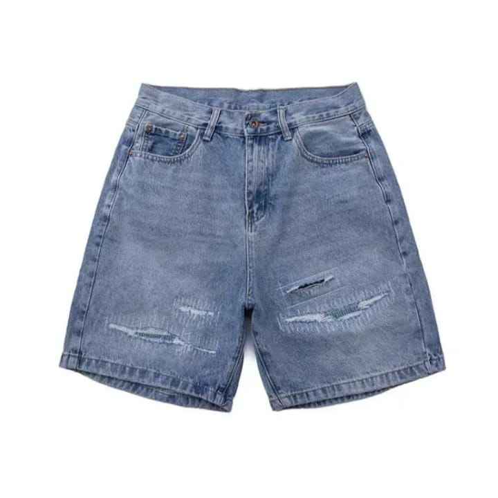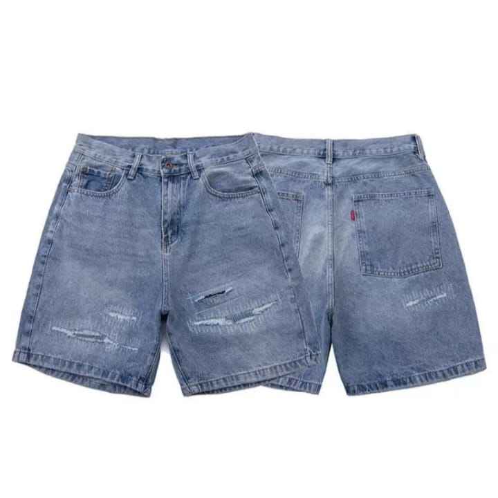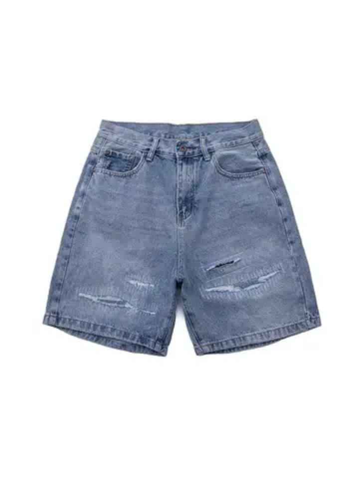 กางเกงยีนส์ขาสั้นผู้ชายแฟชั่นลำลองผ้าฝ้ายดีไซน์พิเศษ สวมใส่สบายทรงหลวม