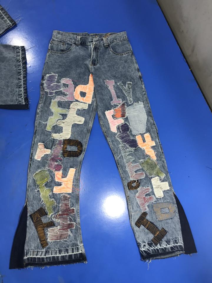 กางเกงยีนส์ดีไซน์เนมแบบกําหนดเองพร้อมแพทช์ปักสําหรับผู้ชายดีไซน์ใหม่สไตล์ใหม่ 2024