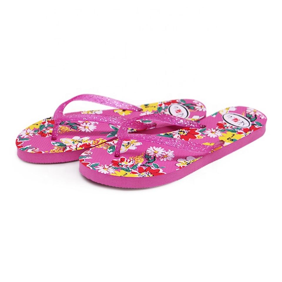 รองเท้าแตะแบบพิมพ์ลายดอกไม้ ดีไซน์เองได้ สายรัดวิบวับ รองเท้าผู้หญิงสำหรับใส่ไปชายหาด พื้นยาง PE นุ่ม สวมใส่สบายในช่วงฤดูร้อน