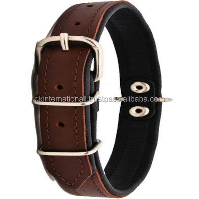 ปลอกคอสุนัขหนังแท้สีดำบุนวมสีน้ำตาลทุกขนาดและสีชุบนิกเกิลชุบโลหะ
