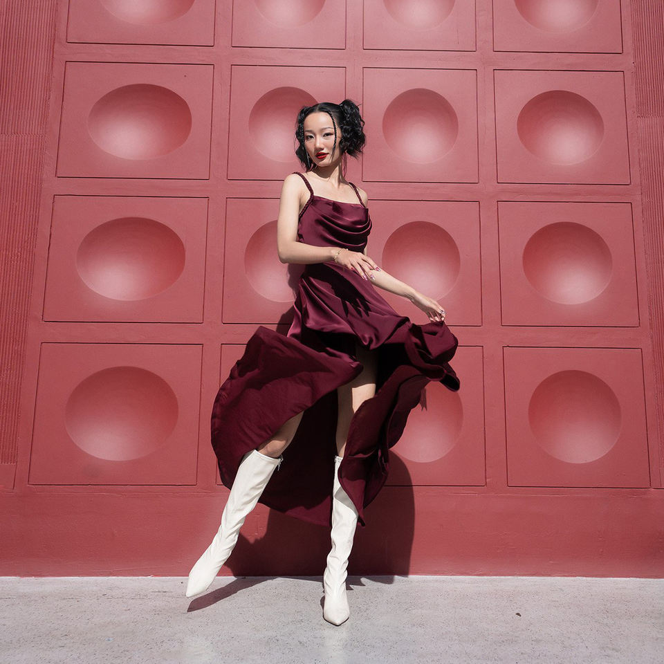 เทคนิค:ชุดเดรสผ้าซาติน MIDI ตัดเป็นเส้นและมีแผ่นรองในตัว
