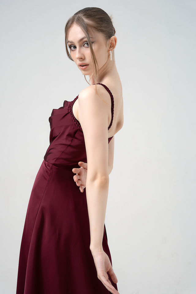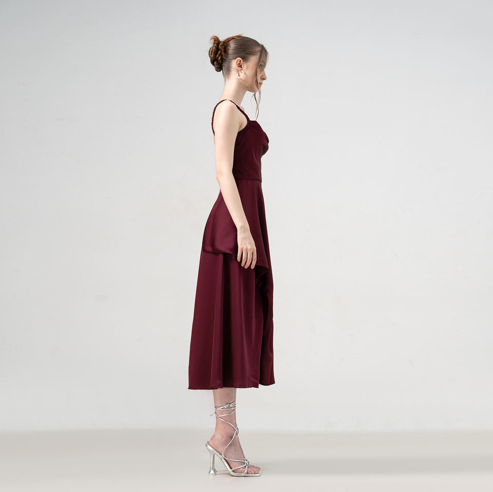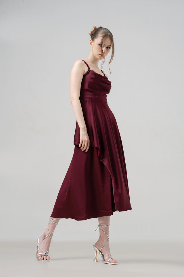 ชุดเดรสผ้าซาติน MIDI ตัดเป็นเส้นและมีแผ่นรองในตัว