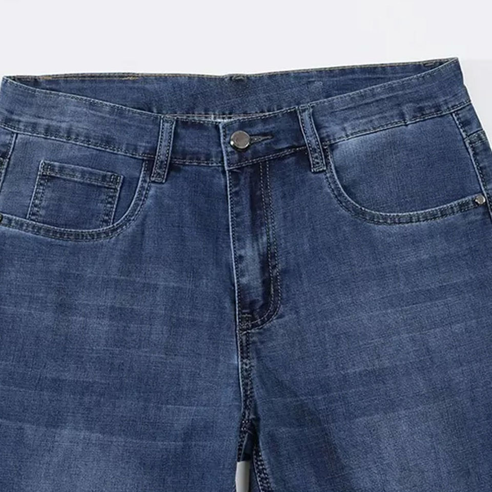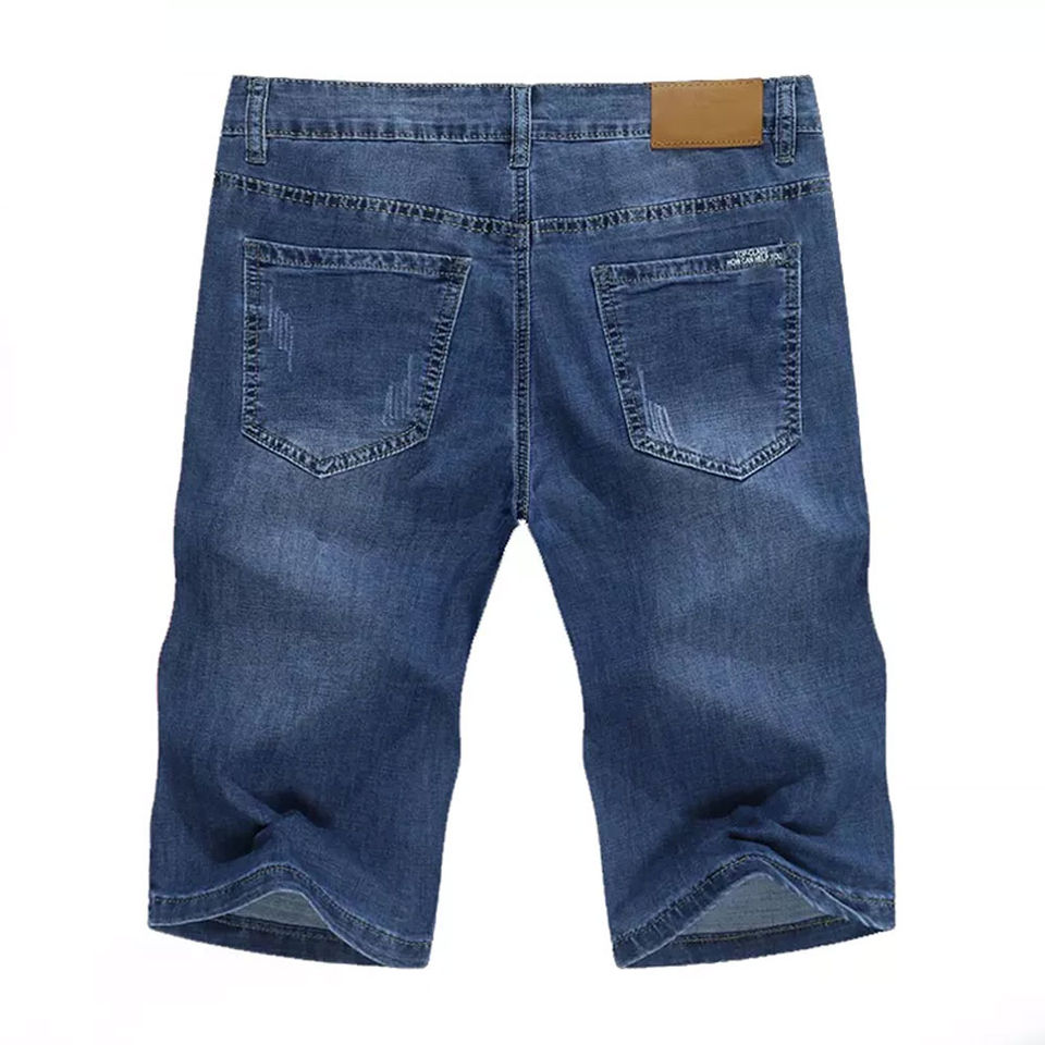กางเกงยีนส์ขาสั้นผู้ชายแบบลำลอง ดีไซน์สั่งทำพิเศษ คุณภาพสูง ระบายอากาศได้ดี ผลิตจากผ้าฝ้าย 100% น้ำหนักเบา เหมาะสำหรับฤดูร้อน ติดกระดุม ทรงตรง ผ้าถัก