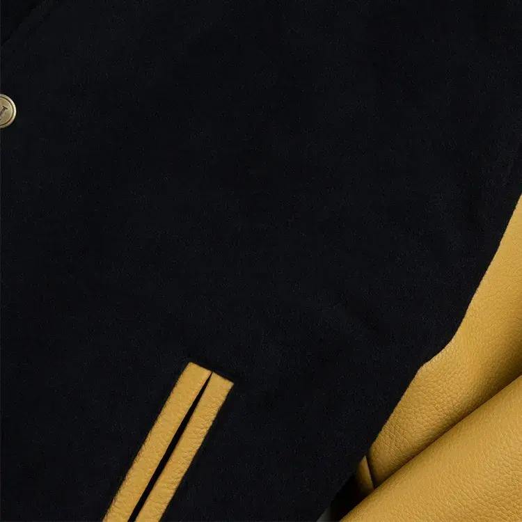 แจ็กเก็ตขนสัตว์คุณภาพสูงสำหรับผู้ชาย, แจ็กเก็ตฤดูหนาวพร้อมคอตั้งดีไซน์ตามสั่งปักด้วยหนังสไตล์เลตเทอร์แมน