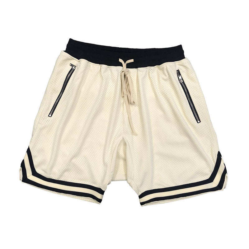 Custom Design High Quality Solid Plain Dyed Summer Men's Mesh Casual Sports Basketball Shorts with Zipper Pockets