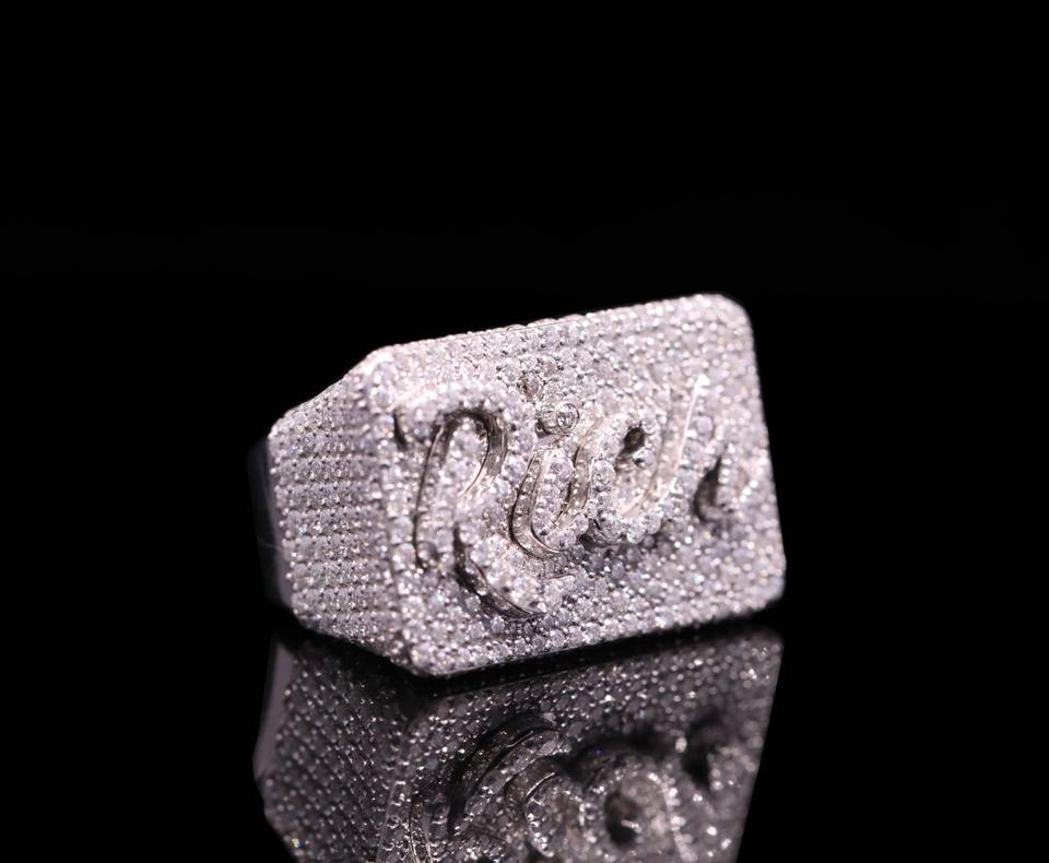 แหวนเพชรฮิปฮอปโมอิสซาไนท์สีเงินสเตอริงแหวนฮิปฮอปใช้ได้ทั้งชายและหญิงดีไซน์ตามสั่งสำหรับงานแต่งงาน