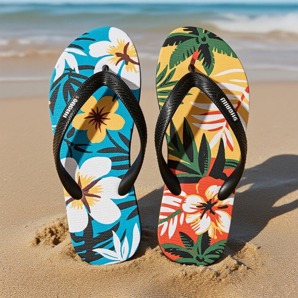 รองเท้าแตะแบบสวมสไตล์เกาะทะเล ลายคลื่นสีฟ้าอมเขียว พื้นยาง PE กันลื่น เหมาะสำหรับฤดูร้อน ออกแบบเองได้