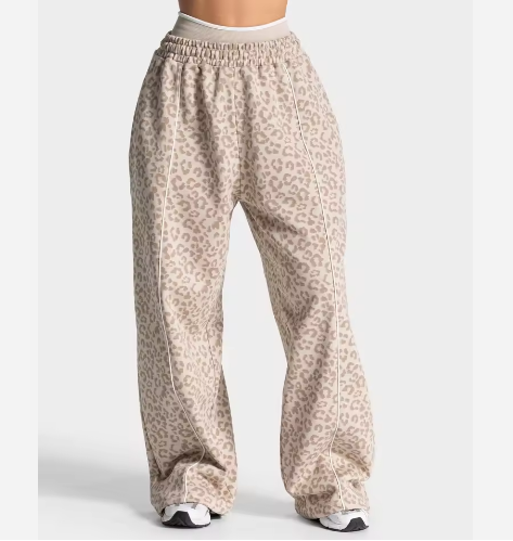 กางเกงจ็อกเกอร์ขาบานพิมพ์ลายตามสั่งพร้อมแถบลายเสือดาวสีดำ ผ้าฝ้ายระบายอากาศ กางเกงวอร์มผู้ชาย กางเกงผู้หญิง