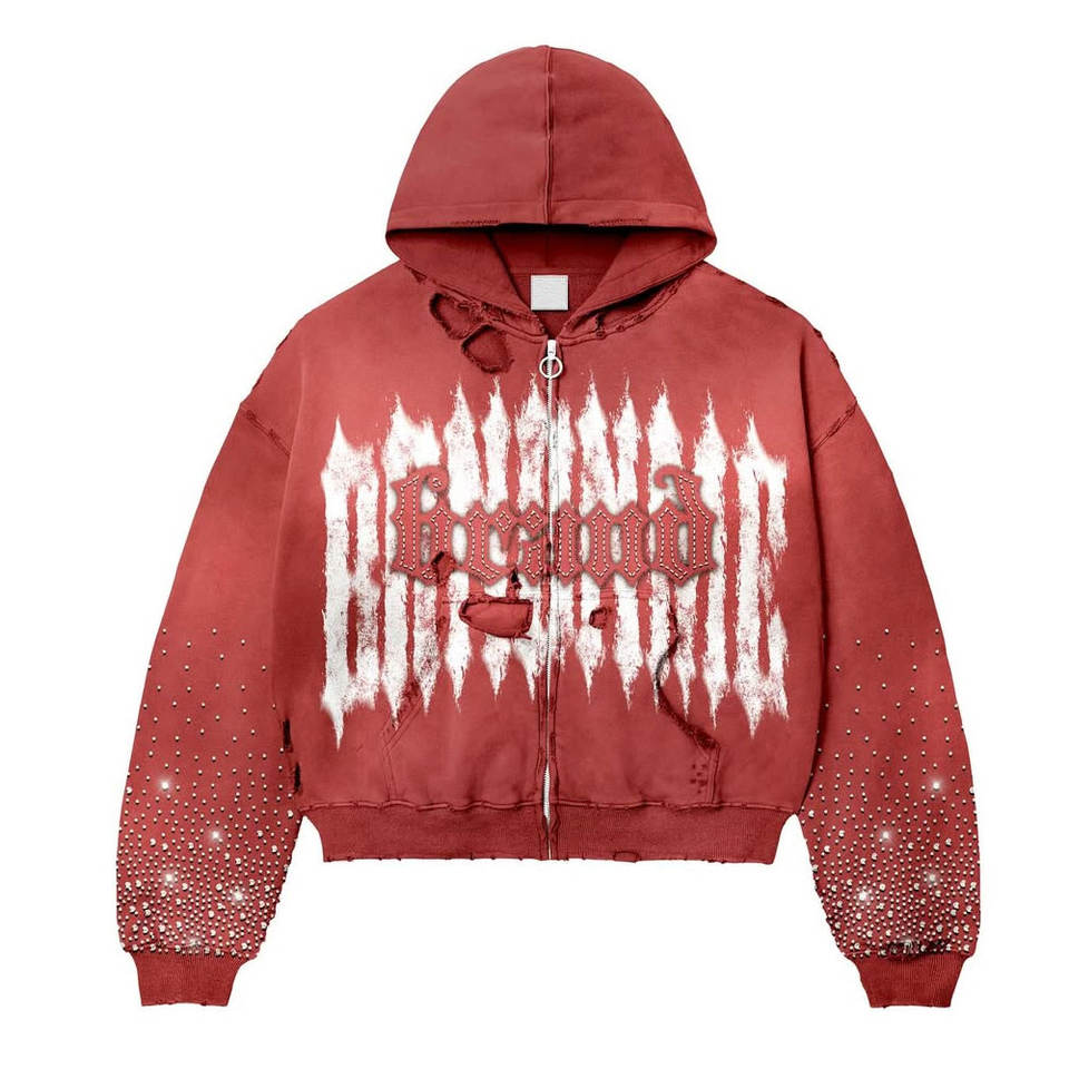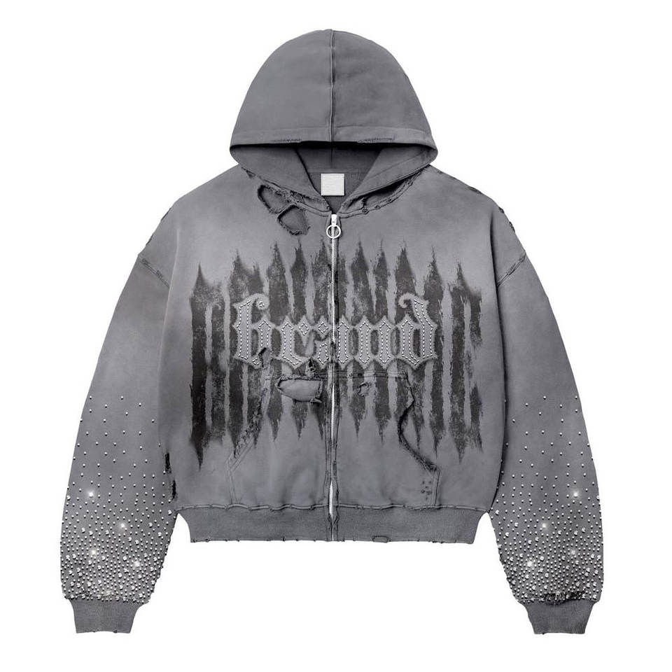 เสื้อมีฮู้ดโบซี่ประดับด้วยพลอยเทียมสีจางออกแบบได้ตามต้องการ