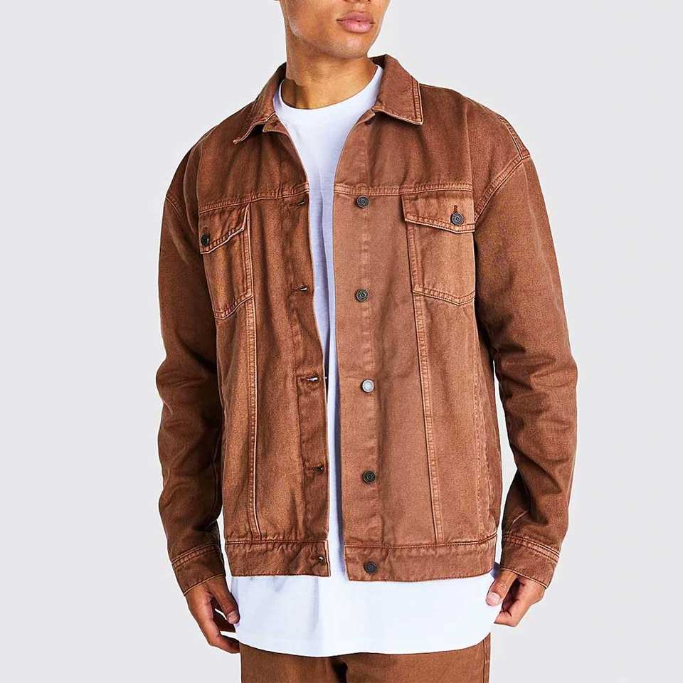 เสื้อแจ็คเก็ตยีนส์ทรงบ็อกซี่ ดีไซน์และโลโก้สั่งทำได้ สไตล์วินเทจ ราคาประหยัด ผ้าฟอกสี ตกแต่งด้วยลายปัก