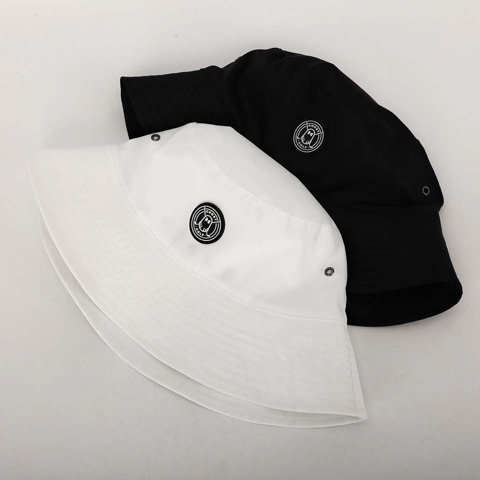 หมวกกันแดดผ้าฝ้ายสีขาวโพลีเอสเตอร์สำหรับผู้ชายผู้หญิงหมวกทรงถังใส่100% แบบพลิกกลับได้