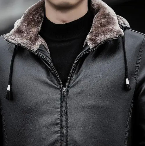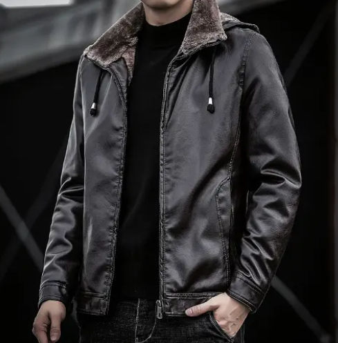 เสื้อแจ็คเก็ตหนังผู้ชายแบบสั่งทำพิเศษ พร้อมปกคลุมศีรษะด้วยผ้าขนสัตว์ สำหรับฤดูหนาว สไตล์เท่ห์ พร้อมคุณสมบัติเฉพาะตามสั่ง