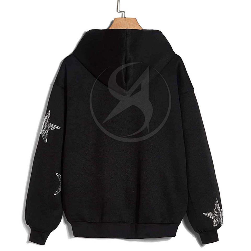 เสื้อฮู้ดดี้ผู้ชายแบบสั่งทำพิเศษ ประดับด้วยคริสตัล พร้อมลายพิมพ์ดิจิทัล ผ้าฝ้าย 100% สำหรับใช้งานกลางแจ้งในฤดูหนาว