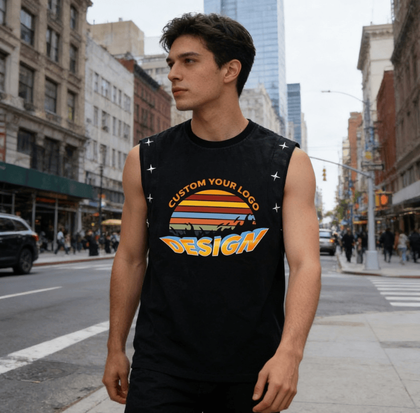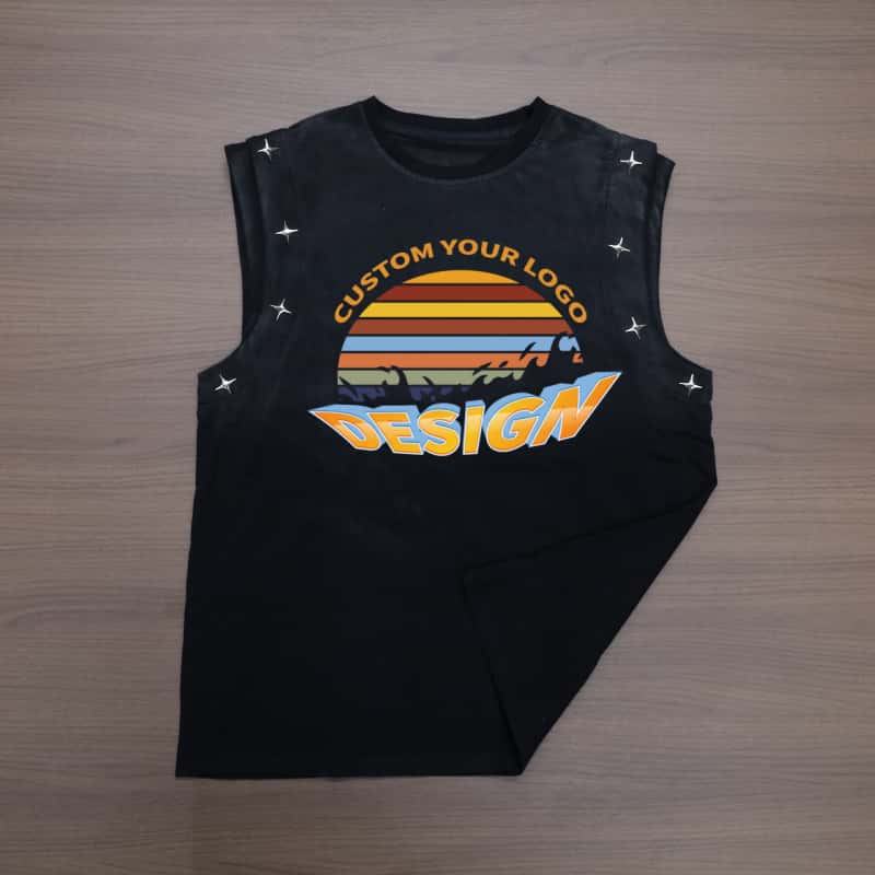 เสื้อกล้ามผู้ชายสไตล์วินเทจแบบสั่งทำพิเศษ ลุคซันเซ็ททรงโอเวอร์ไซส์ สไตล์ฮิปฮอป