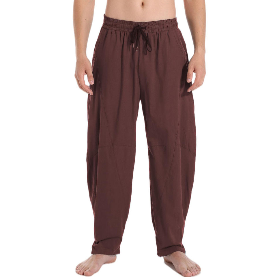กางเกงเอวกลางของผู้ชายกางเกงผู้ชายแบบถักกลางแจ้งมีกระเป๋าขนาดใหญ่กางเกงจ็อกเกอร์พอดีกับข้อเท้าสำหรับสตรีทแวร์
