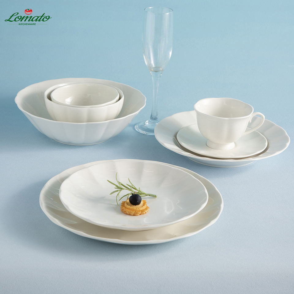 แผ่นเซรามิกลายนูนลายกระดูกจีนสำหรับใช้ในบ้านและงานอีเวนต์ดีไซน์ตามสั่งใหม่