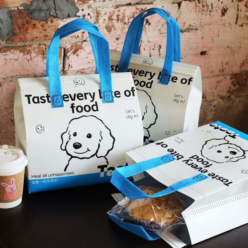ถุงเก็บความร้อนแบบใช้แล้วทิ้ง ผลิตตามสั่ง ทำจากผ้าไม่ถักทอ บุด้วยอลูมิเนียมฟอยล์ สำหรับส่งอาหาร ขนมปัง เค้ก และอาหารแบบนำกลับบ้าน
