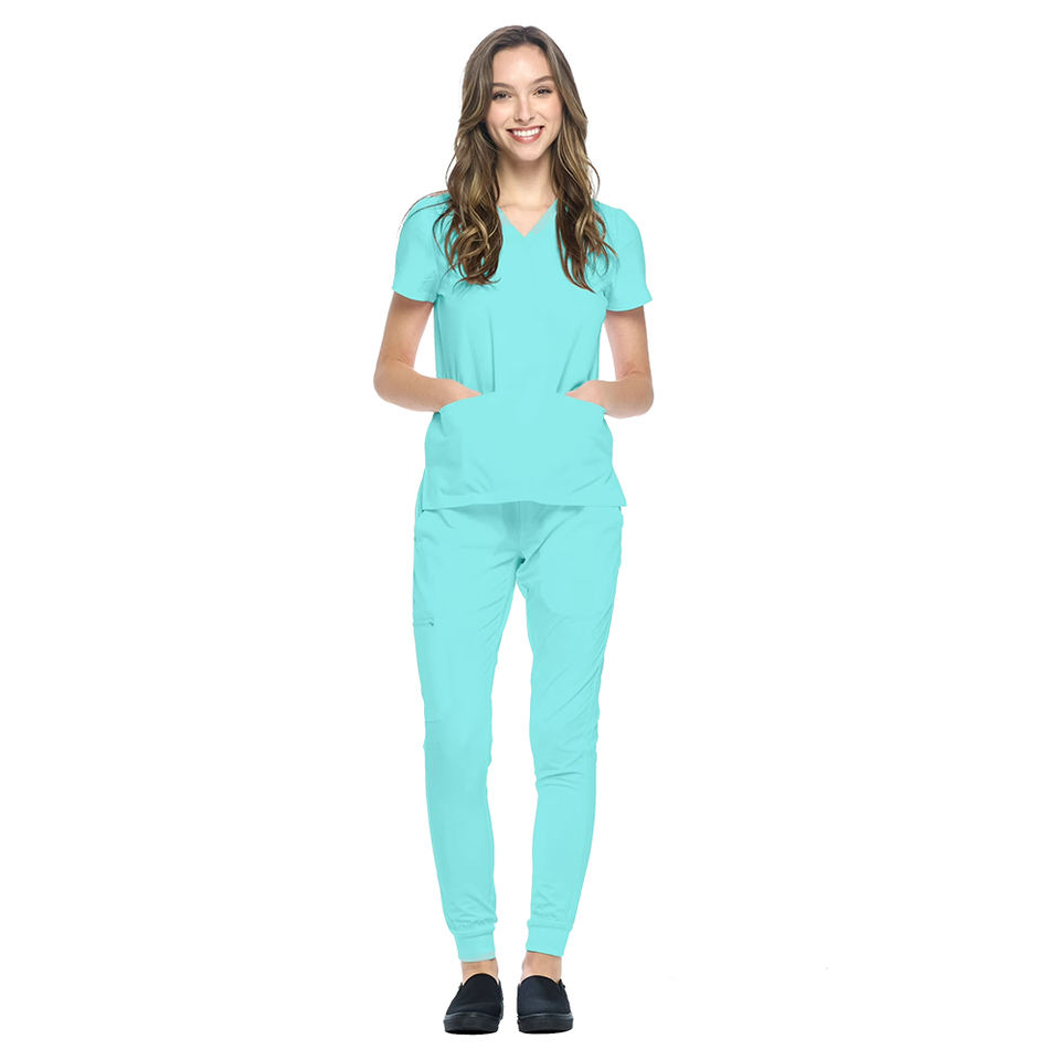 ชุดพยาบาลผ้าโพลีเอสเตอร์ผ้าคอตตอนแห้งเร็วชุดสีทึบล้างทำความสะอาดได้ใส่สบายดีไซน์แบบกำหนดเอง