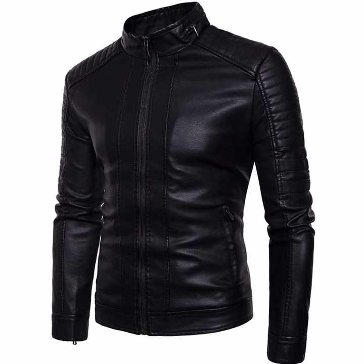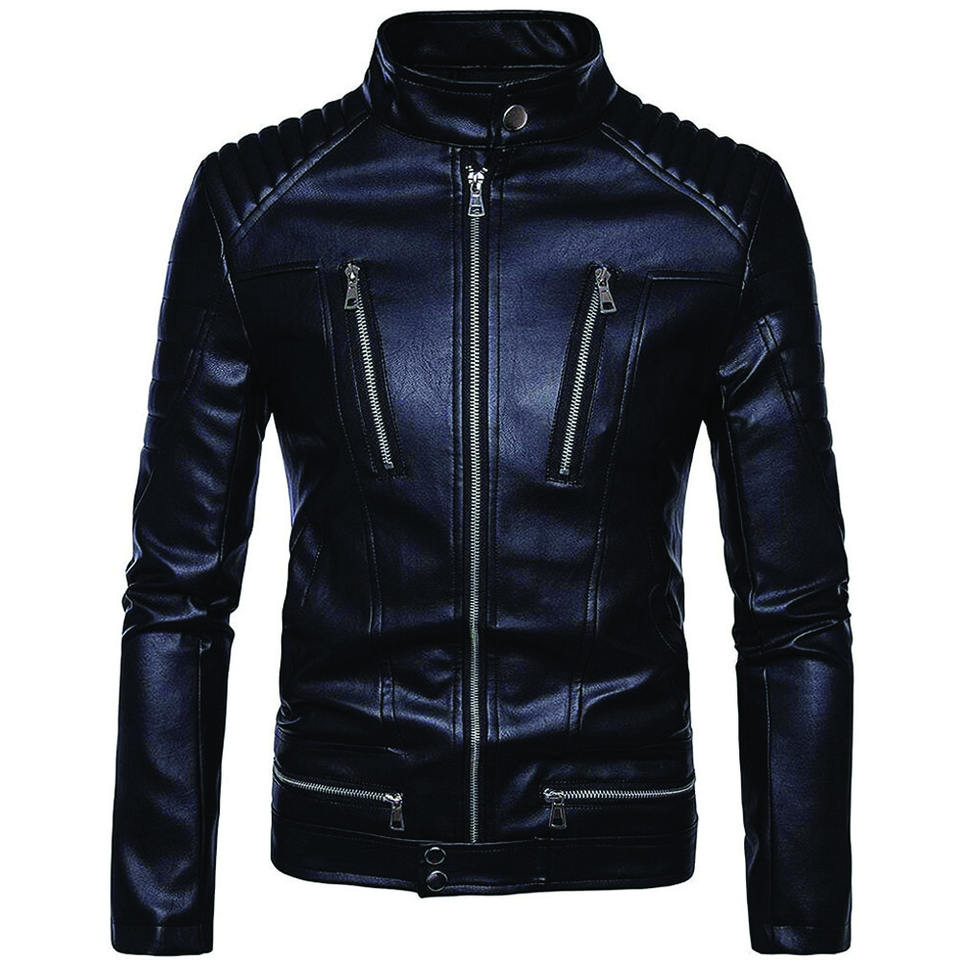 เสื้อแจ็คเก็ตหนัง PU ดีไซน์เองสำหรับผู้ชาย สไตล์วินเทจเท่ๆ สำหรับฤดูหนาว