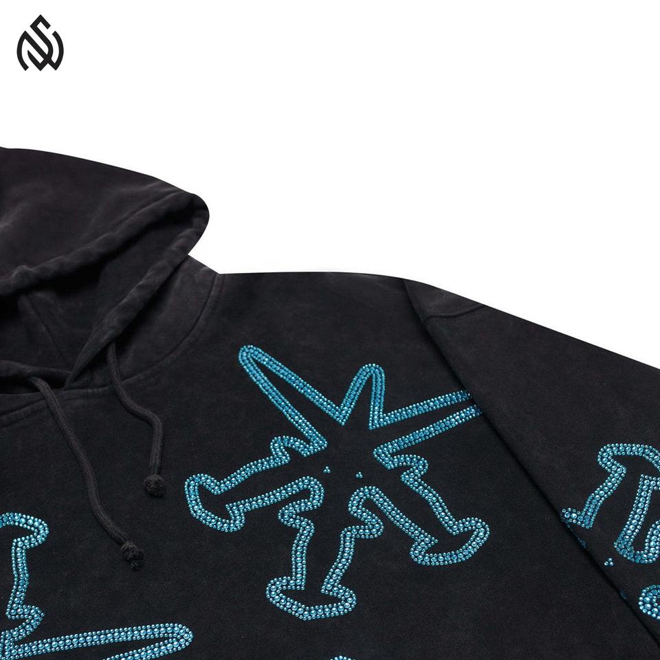เสื้อฮู้ดผ้าฝ้ายสไตล์วินเทจประดับพลอยเทียมลาย100% ออกแบบได้ตามต้องการ