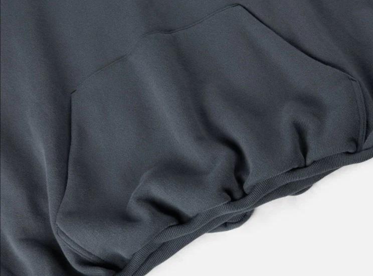 การออกแบบที่กําหนดเองขนาดบวกไหล่ตกกรดล้างนูนขนแกะผ้าฝ้าย 100% ความทุกข์ยากการออกแบบฮู้ดที่ไม่ซ้ํากันตัดเสื้อกันหนาวหมวกสําหรับผู้ชาย