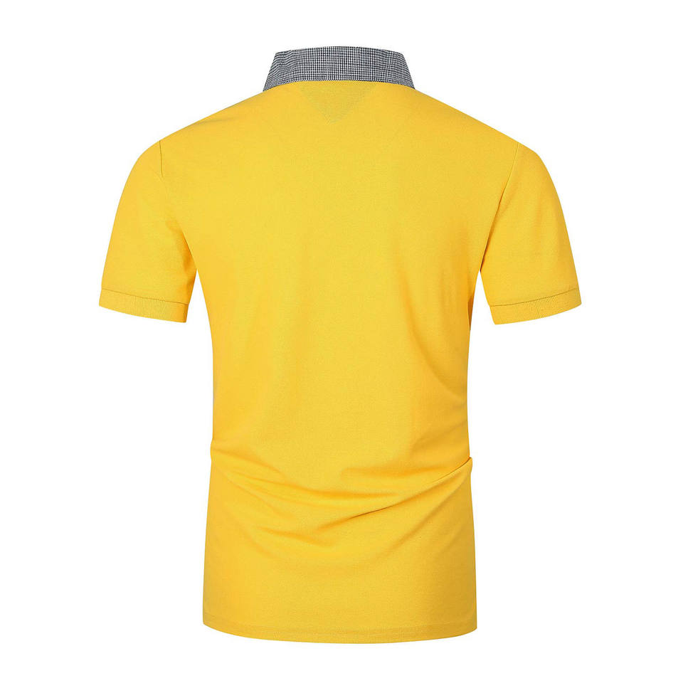 เสื้อโปโลสำหรับผู้ชายเสื้อโปโลแขนสั้นเข้ารูปผ้าฝ้ายลำลองแบบปะติดมีสไตล์มีปก