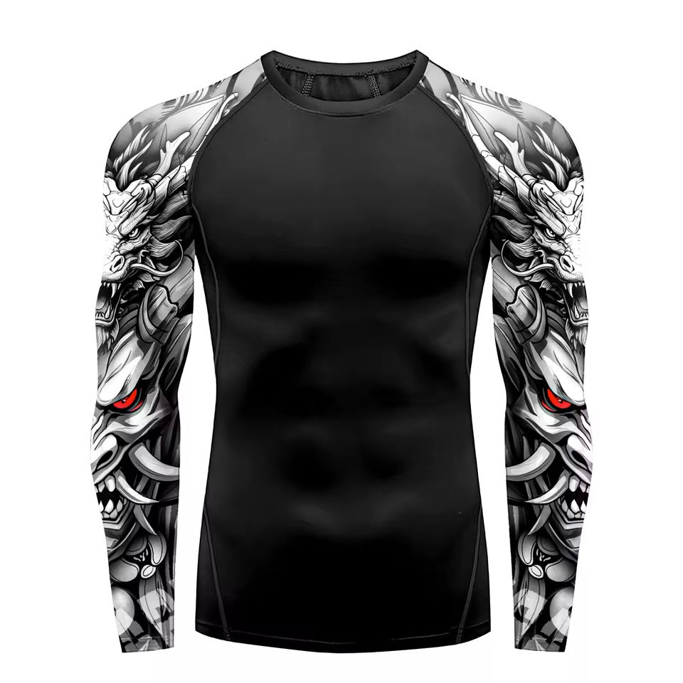 เสื้อแรชการ์ดแบบ Jitsu แขนยาวสำหรับผู้ชายผ้าโพลีเอสเตอร์/ ไนลอนแบบแห้งเร็วออกแบบได้ตามต้องการโลโก้