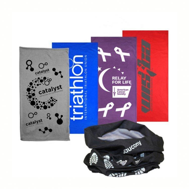 ผ้าพันคอคลุมหน้าสำหรับกีฬากลางแจ้งท่อโพลีเอสเตอร์ไร้รอยต่อพิมพ์โลโก้ได้ตามต้องการ