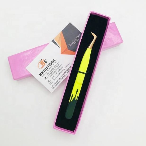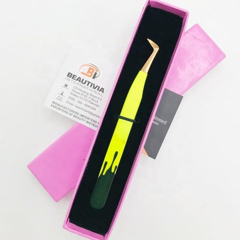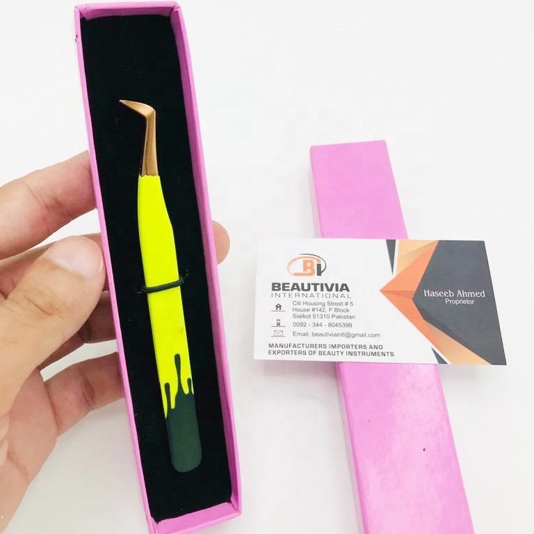 แหนบต่อขนตาทำจากสเตนเลสชนิดปลายแหลมแบบมืออาชีพพิมพ์ลายดีไซน์แบบยั่งยืน