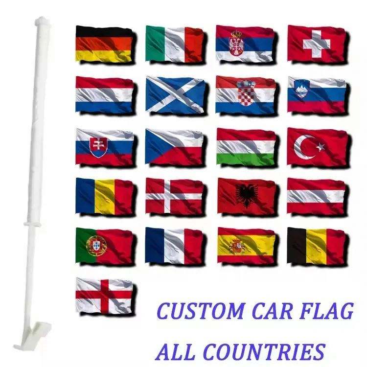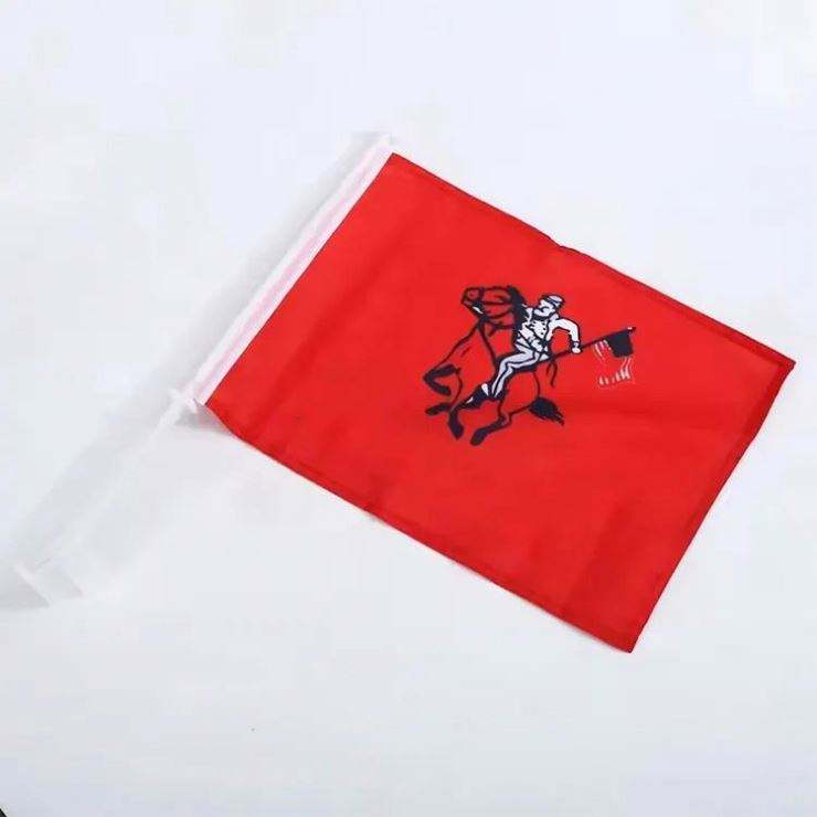 ออกแบบพิมพ์โลโก้ตามสั่ง ธงติดกระจกรถยนต์โพลีเอสเตอร์ หลายขนาด 30*45 ซม. พร้อมเสา