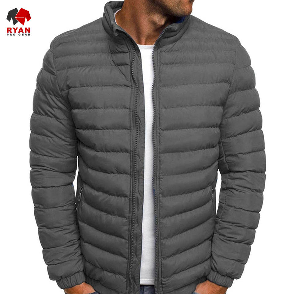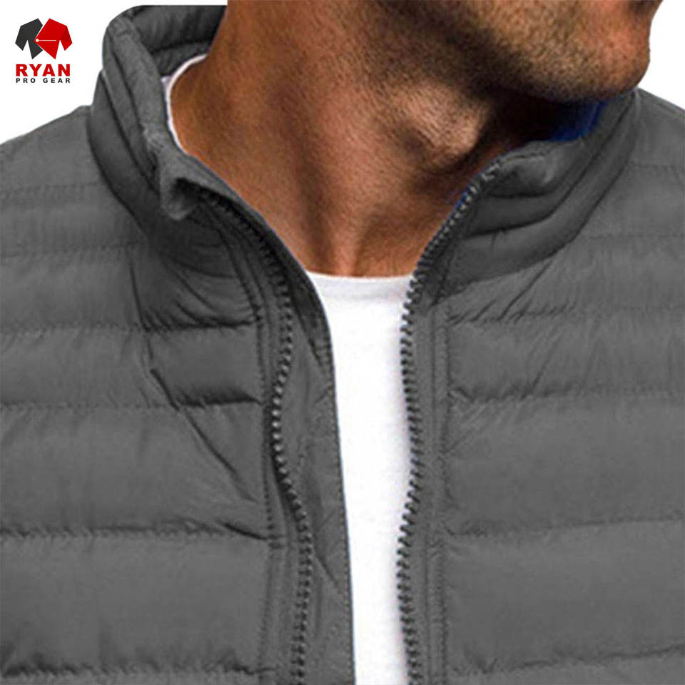 เสื้อแจ็คเก็ตพัฟเฟอร์แบบสั่งทำพิเศษสำหรับผู้ชาย พร้อมโลโก้ตามสั่ง ปิดด้วยซิป เนื้อผ้าระบายอากาศได้ดีและสวมใส่สบาย คอตั้ง