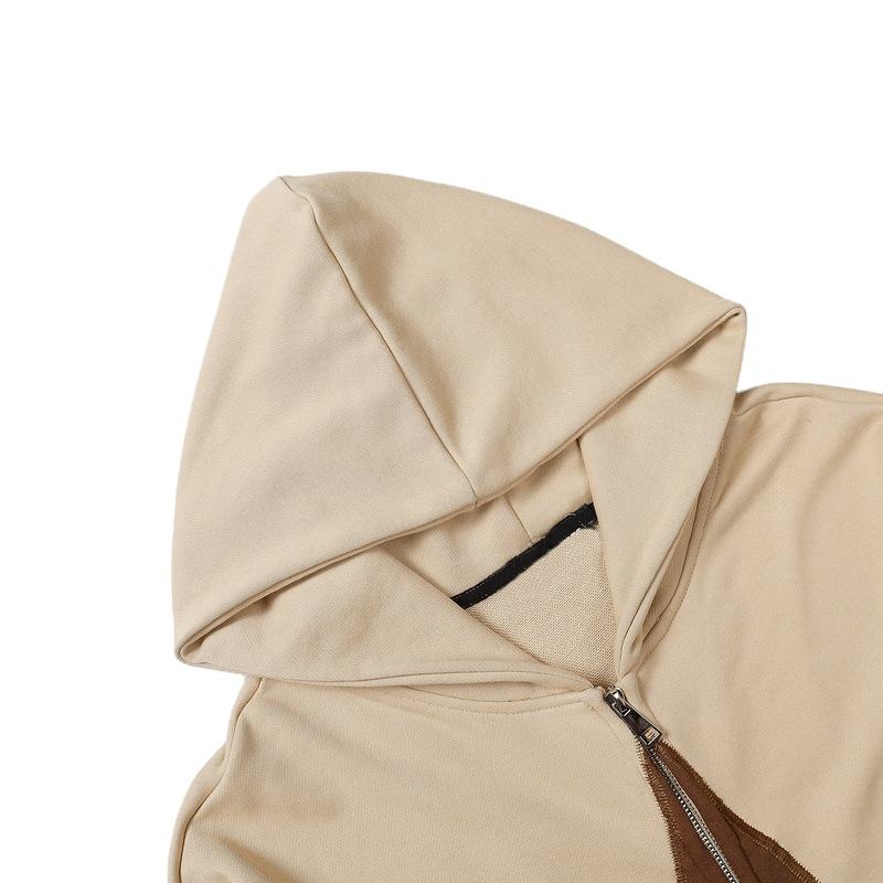 การออกแบบที่กําหนดเองดิบเฮ็มเสื้อHoodies Unisex 100 Cotton Crop Cut Edge Hoodieการพิมพ์ตัดขอบที่กําหนดเองตัดและเย็บบนHoodie