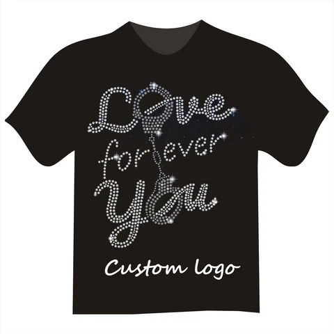 เสื้อยืดผ้าฝ้ายถัก100% สำหรับผู้ชายทรงหลวมพิมพ์ลายพลอยเทียมแบบกดความร้อนแวววาวไรน์สโตนแบบกดความร้อนดีไซน์ตามสั่ง
