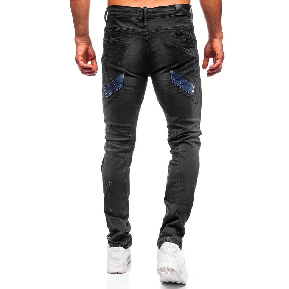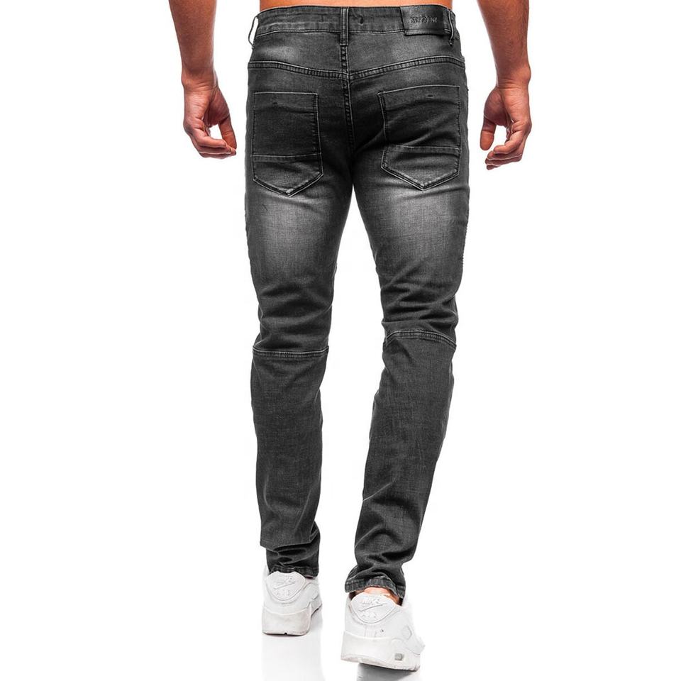 กางเกงยีนส์ยืดขาตรงสำหรับผู้ชายกางเกงยีนส์ขาดๆดีไซน์ตามสั่งมีกระดุมตกแต่งสไตล์ฮิปฮอปซัก