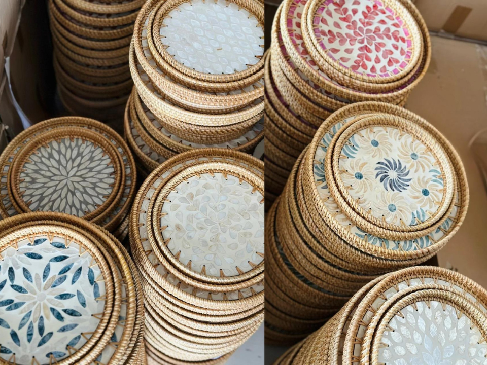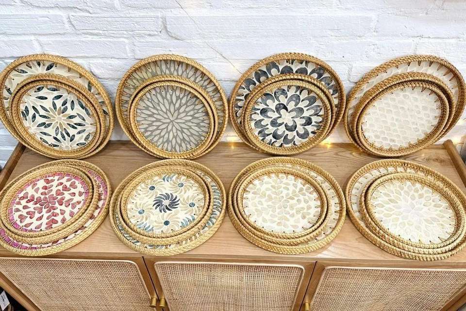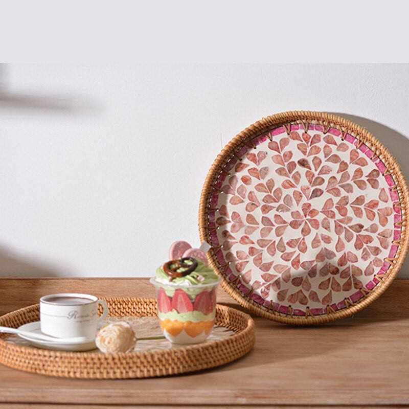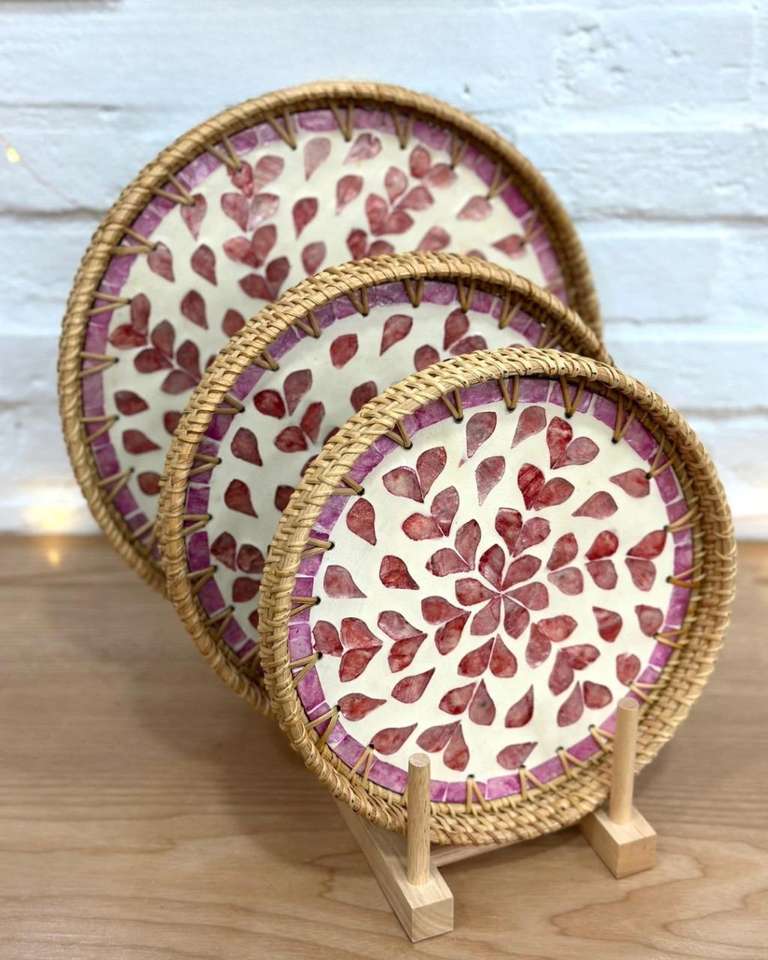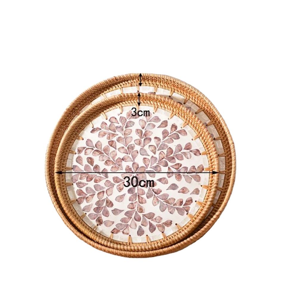 ถาดหวายทรงกลมออกแบบเองพร้อมแม่ของมุกถาดหวายตกแต่งทรงกลมขายส่งในเวียดนาม