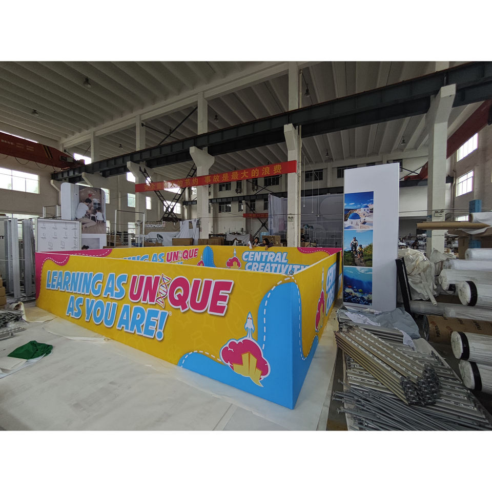 Custom Design Square Aluminum Tension Fabric Pillowcase Promotion Advertising Exhibition Trade Show Booth Hanging Ceiling Banner