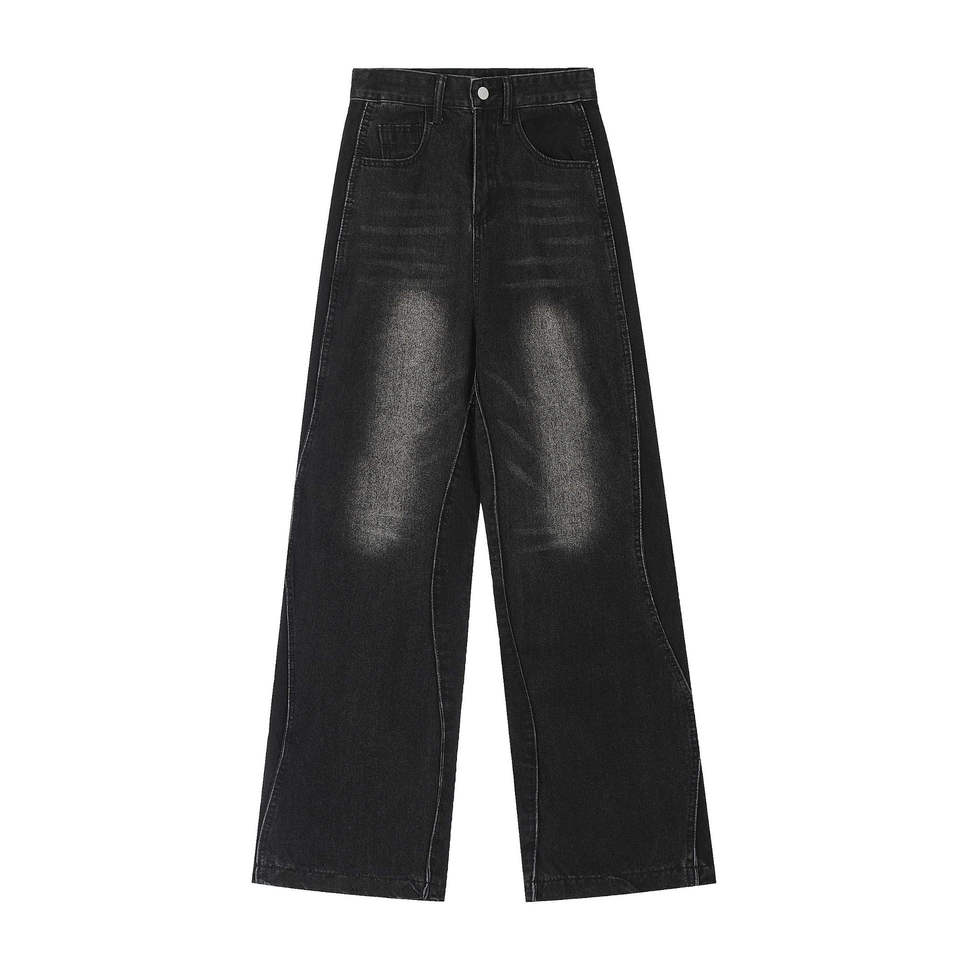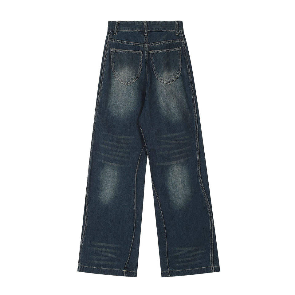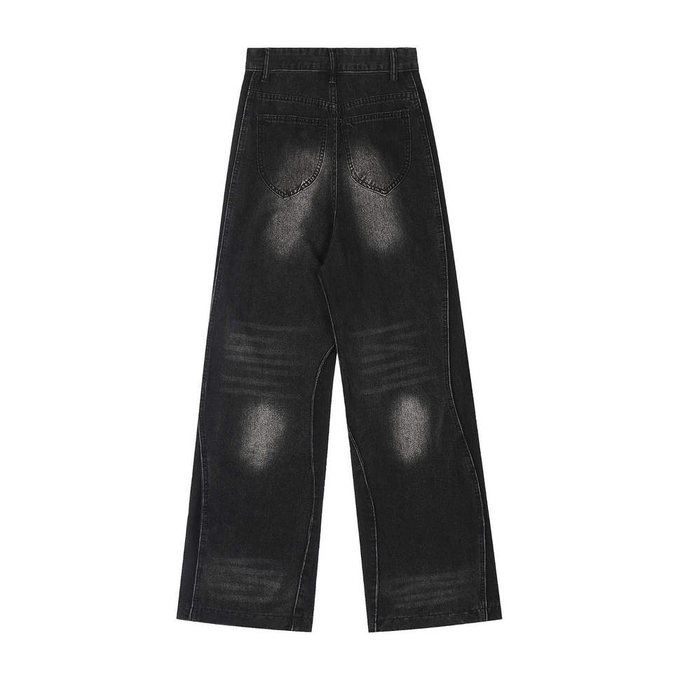 กางเกงยีนส์ดีไซน์เอง สตรีทแวร์คุณภาพสูง ผ้าฝ้ายฟอกสี กางเกงผู้ชาย